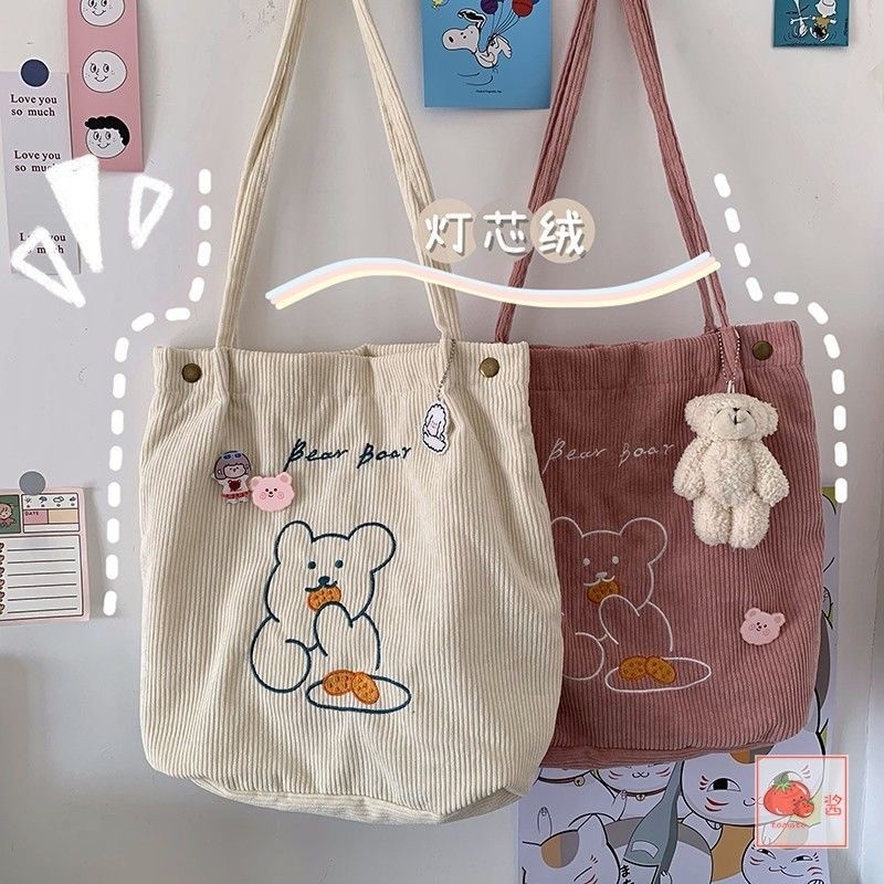 - Adorable Cartoon Bear Design: Each tote features a cute embroidered bear motif, complete with little embellishments that give it a unique personality.